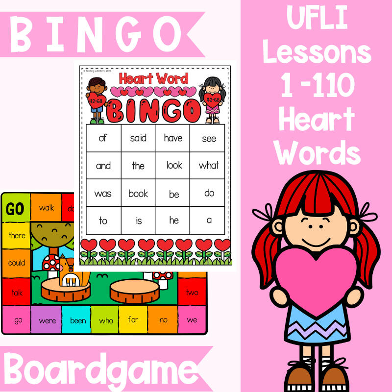 Keep UFLI heart words learning fun and engaging for your young learners with this bundle of bingo game mats and boardgames mats. The perfect UFLI aligned activities and games to keep learning heart words fun.
